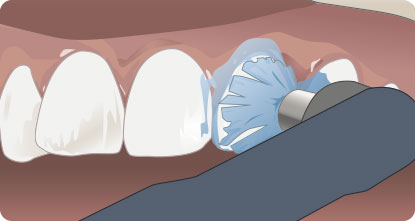 Lyshærd 10 sekunder distalt og mesialt.