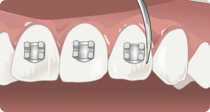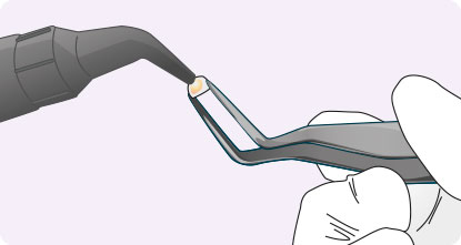 Påfør GC G-ænial på låsen (bracket) eller røret. Sørg for at adhæsivet bliver presset tilstrækkeligt ind i basen eller gitteret.